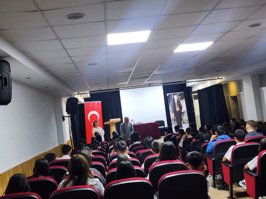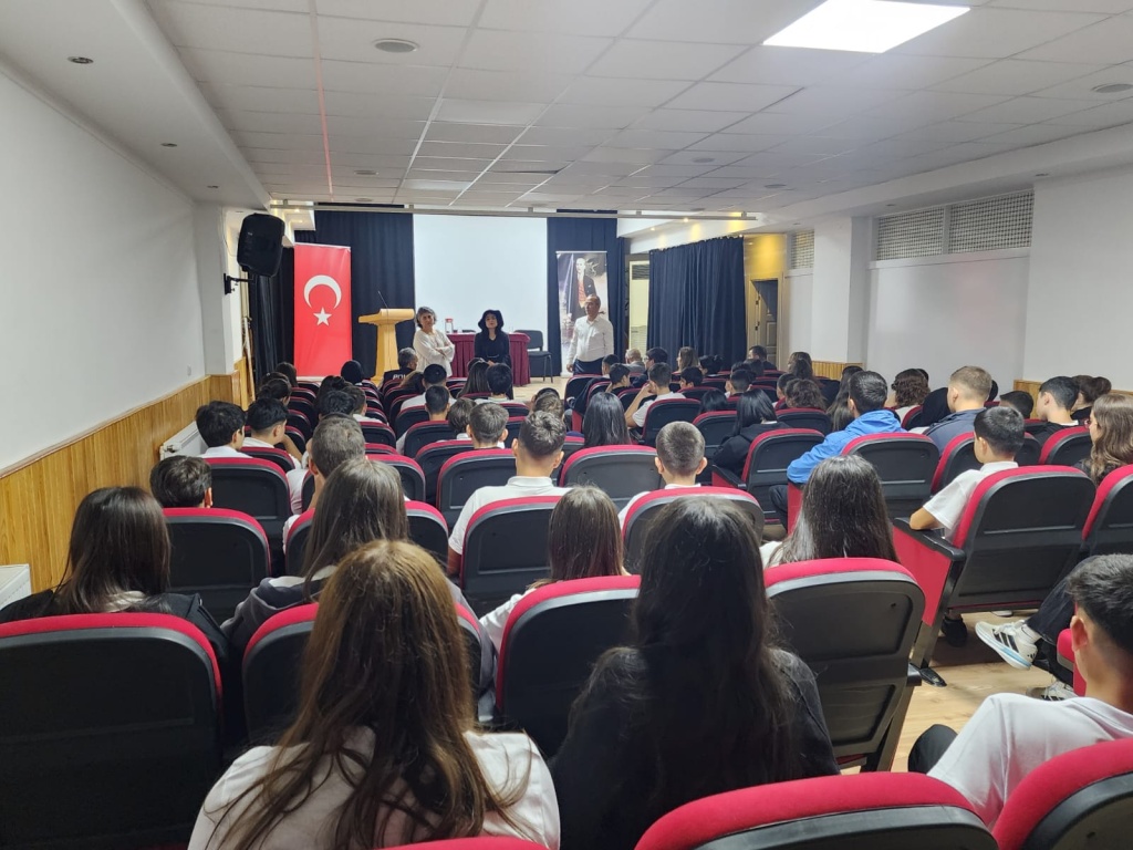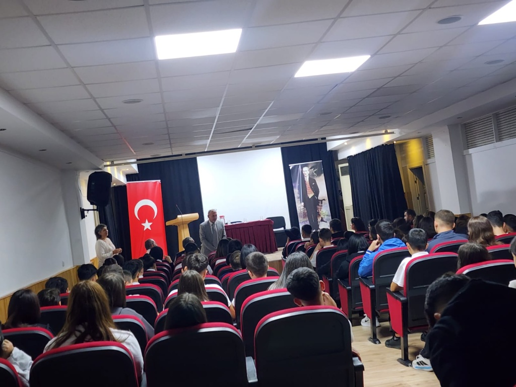 Okul müdürümüz Asuman İÇEN, 9. sınıflardan sorumlu olan müdür yardımcımız İbrahim AYAZ, Disiplin kurulu öğretmenlerimiz Bahar BORAN, Volkan GAZİLER, Rehber Öğretmenlerimiz Özgür Cihan GÜL ve Sevil SEVİLİR KARAKİRAZ tarafından 9. sınıf öğrencilerine okul kuralları hakkında seminer verilmiştir.
